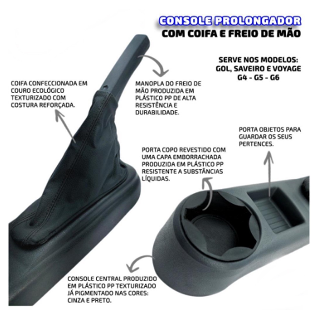 Console Central Prolongador Porta Copo Coifa Câmbio Freio Adaptável Gol Parati Saveiro Bola G2 G3 G4