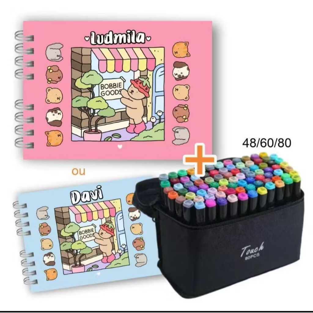 kit livro infantil de ursinhos Caderno Boobies Good p/ Colorir Capa Dura Tamanho A5 14x21cm