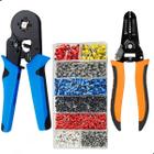 Alicate Crimpar Prensa Terminal Ilhos Tubolar 0,25mm Até 10mm² Pressão 1200 ilhos de bitolas variadas + Descascador Fios