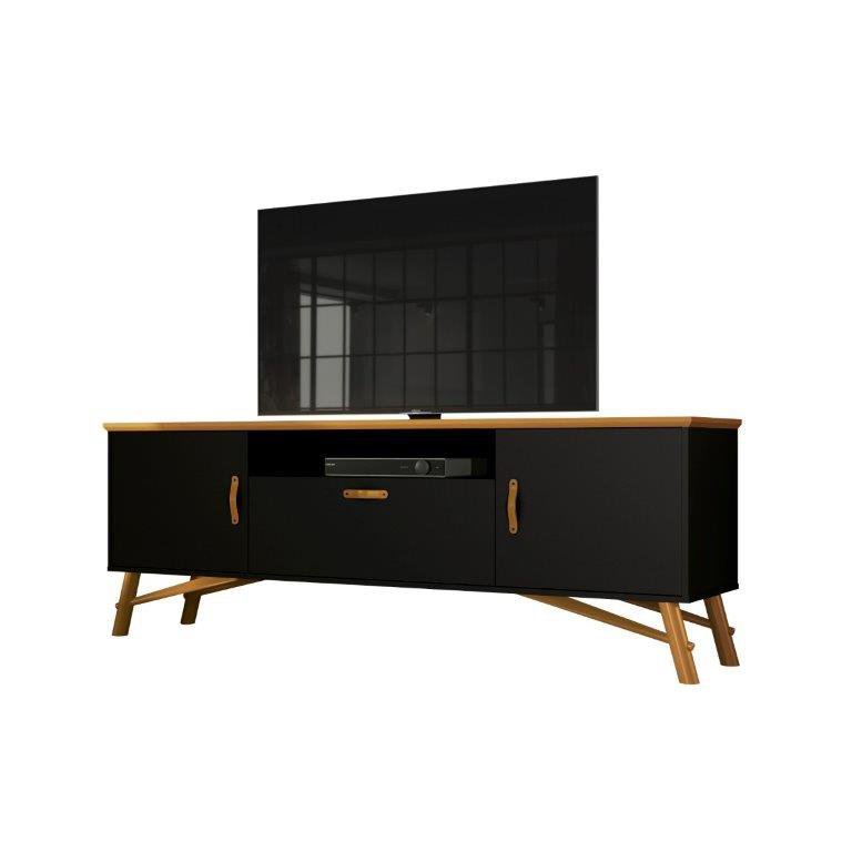 Rack / Bancada FEL Modelo Retrô com Pés em Madeira Maciça Porta Central Basculante com Pistões a Gás