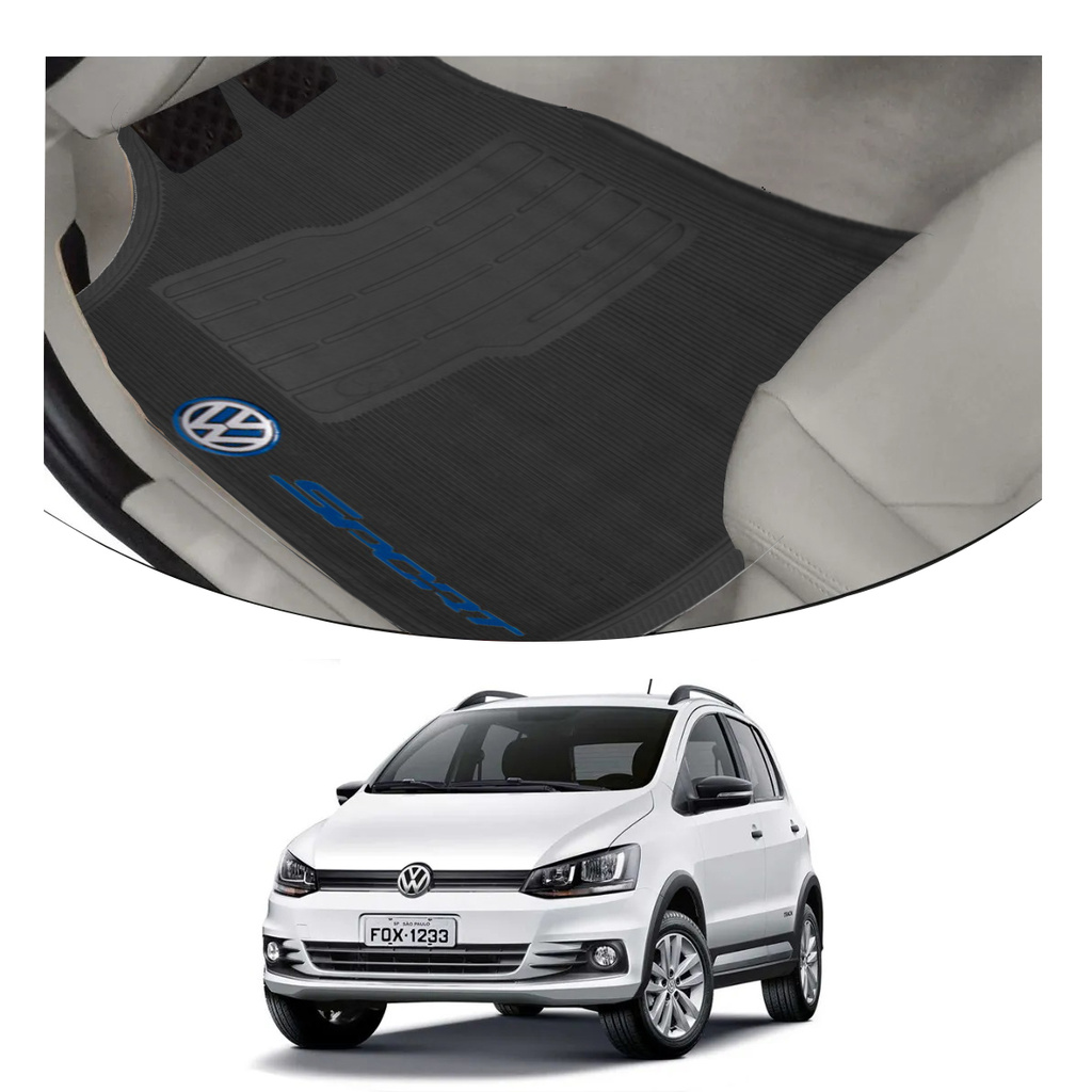 Tapete Automotivo Borracha Personalizado Voyage - Volks, Vw, Gol, Fox, Saveiro, Quadrado, Polo, Golf, Up Tsi, Crossfox, Space Fox, Passat - Tapete para Carro, Carpete Carro, Carpete para Carro, Sport, Preto