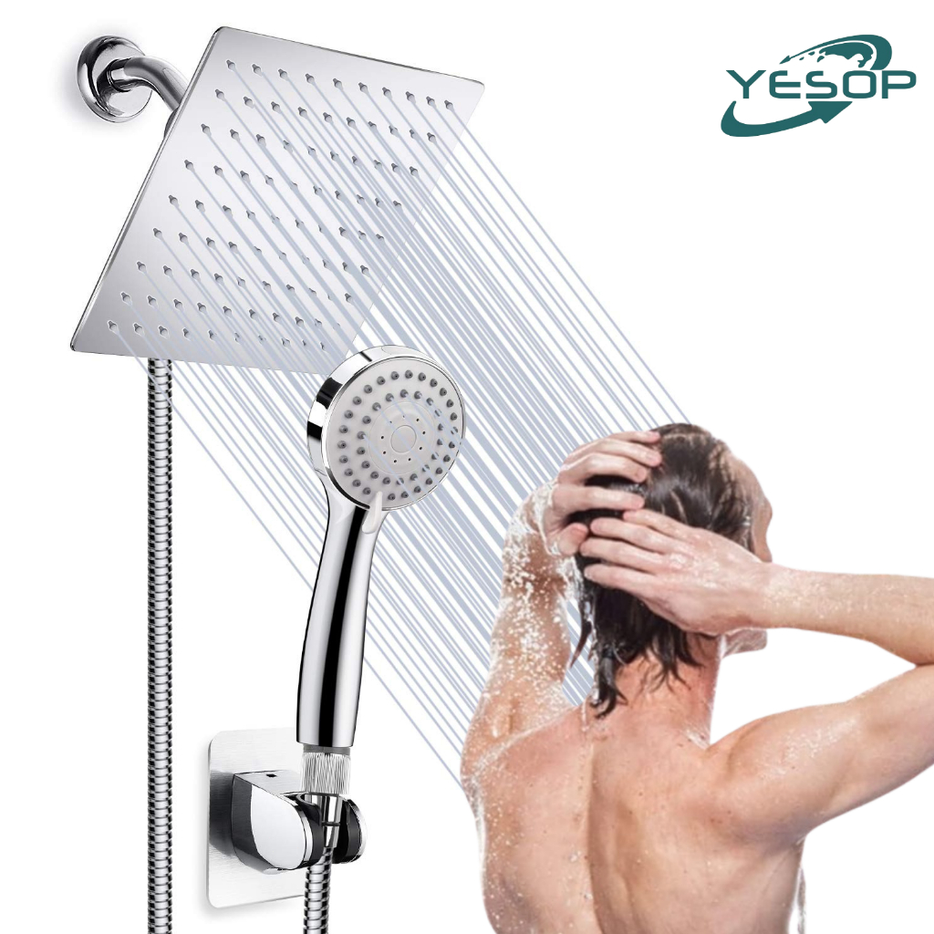 Chuveiro Com Desviador E Ducha Manual Terno 20x20cm Aço Inox Cromado Yesop