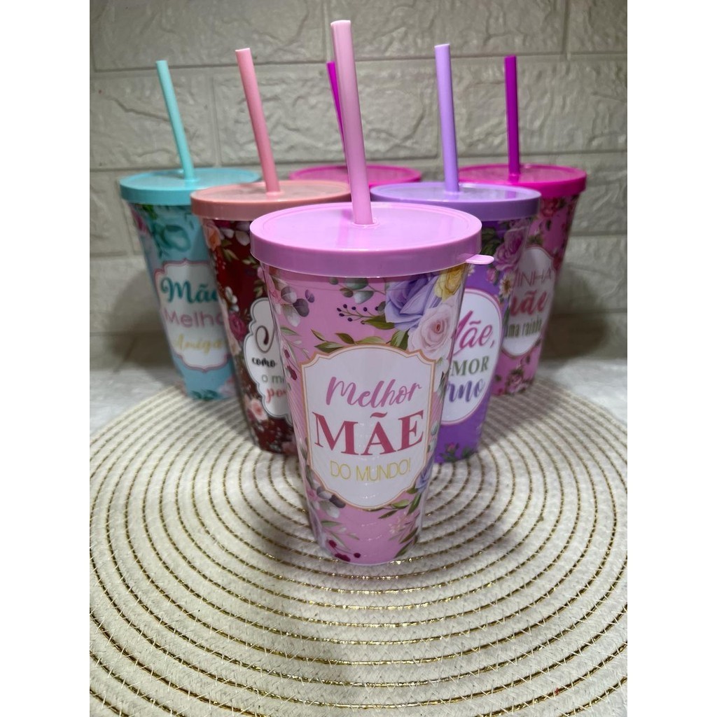 COPO COM CANUDO PERSONALIZADO DIA DAS MÃES