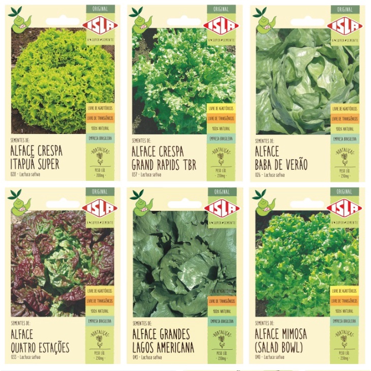 Sementes de Alface Crespa, Lisa, Mimosa, Quatro Estações - Semente Isla