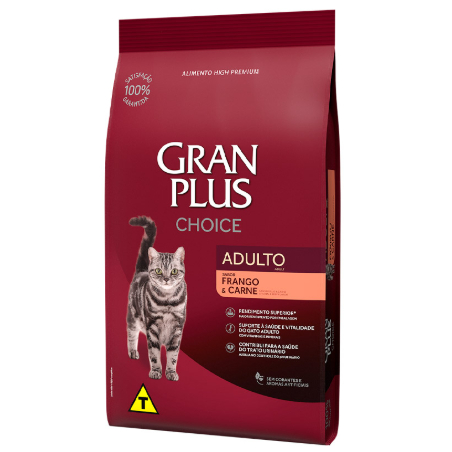 Ração Gran Plus Choice para Gatos Adultos Sabor Frango e Carne 10,1 kg