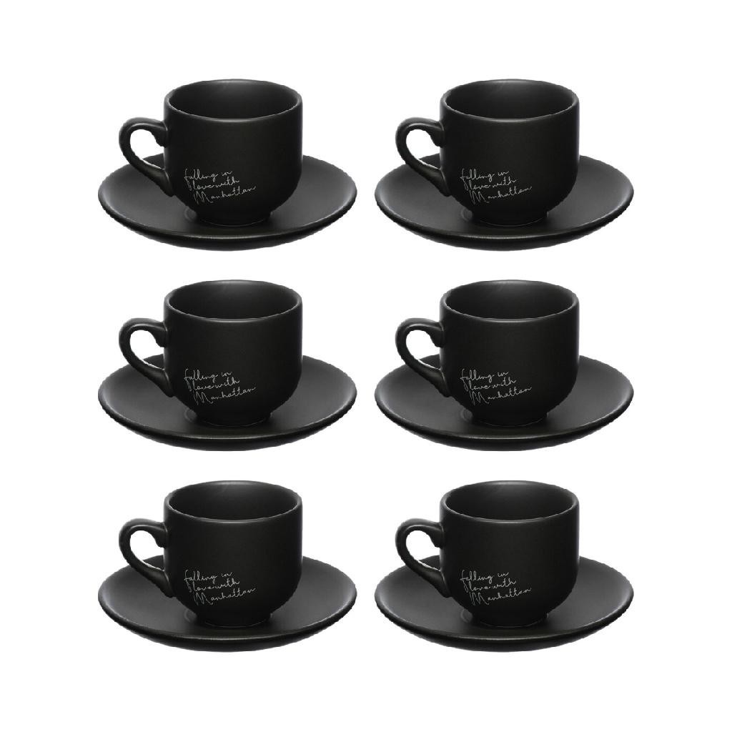 Jogo 6 Xícaras Porcelana Com Pires Manhattan Chá Café 90ml