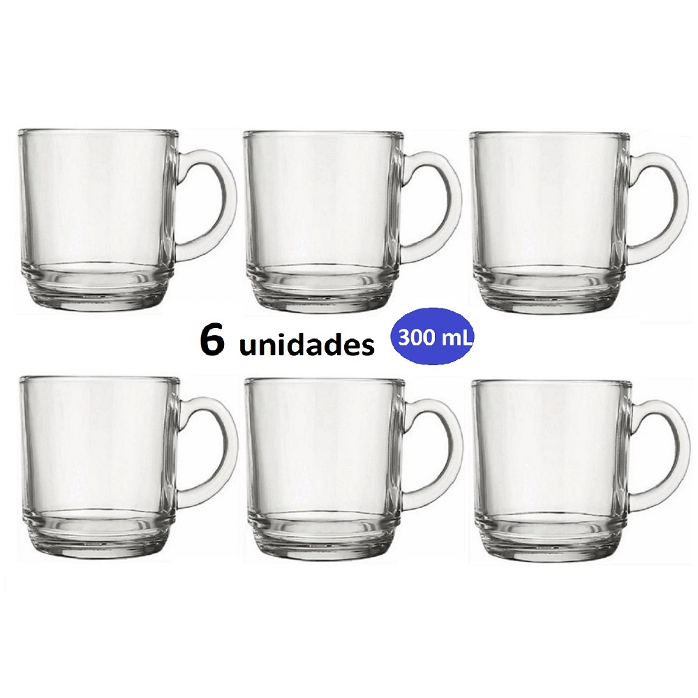 Jogo de canecas 270ml, vidro Nadir, modelo Americano (4 unidades ou 6 unidades)