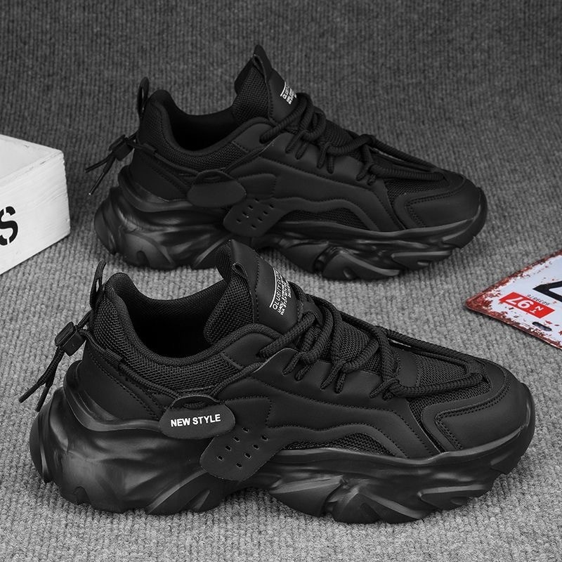 Calçados masculinos da moda 2024 Nova versão coreana de verão moda esportes casuais sapatos de tabuleiro pretos masculinos de fundo grosso versátil