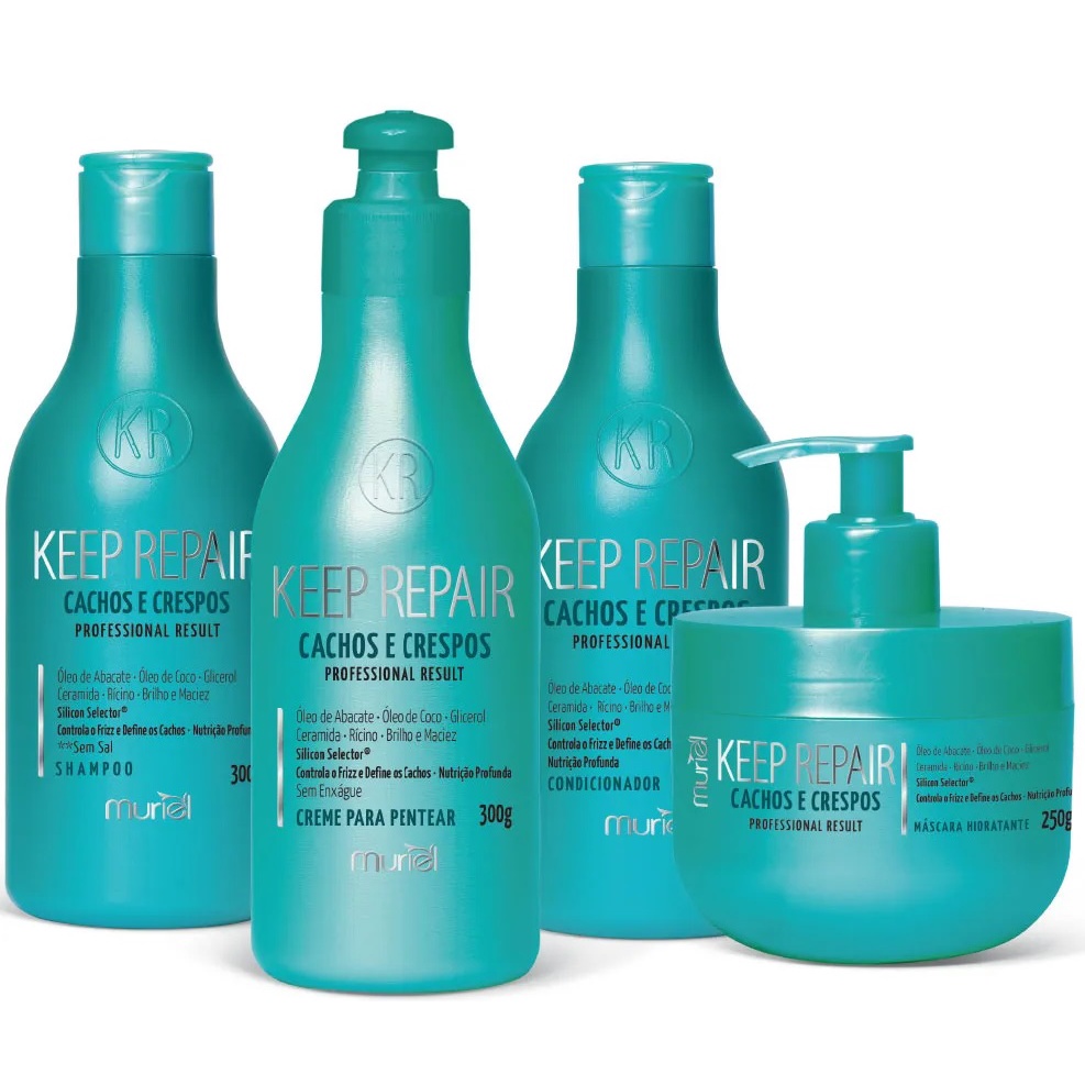 Kit Profissional c/ Shampoo + Condicionador + Máscara + Creme para Pentear - Keep Repair - CACHOS E CRESPOS - Muriel
