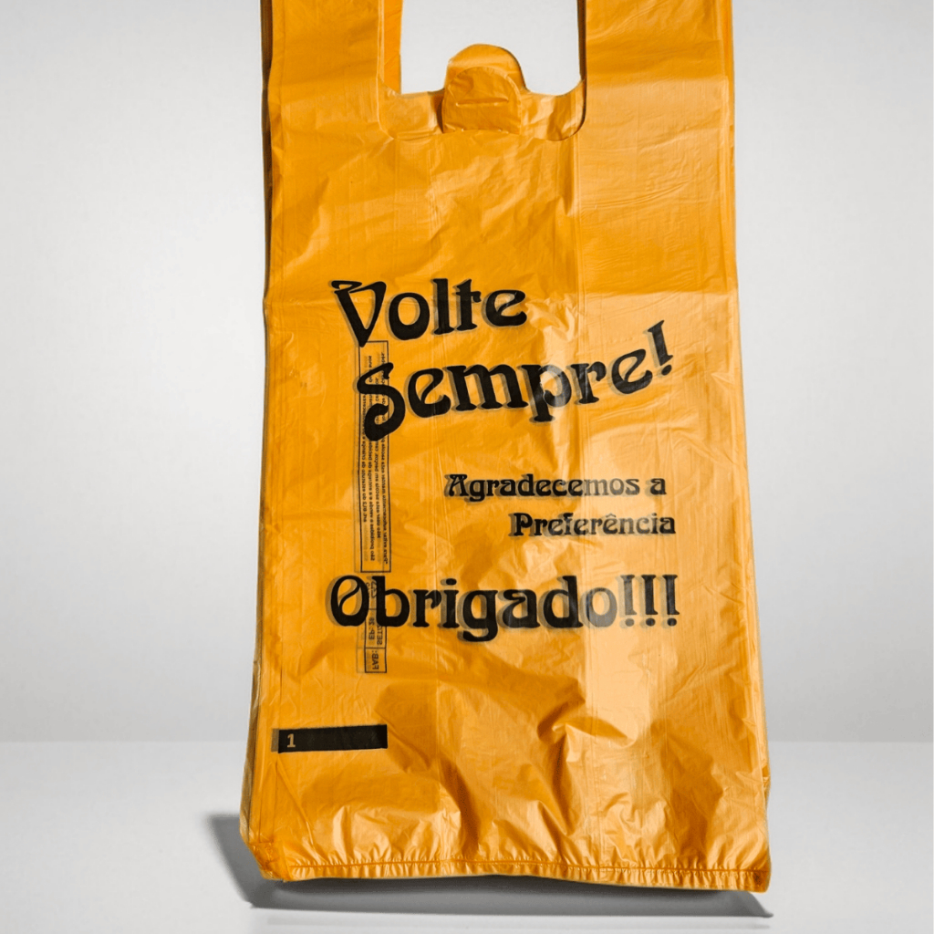 Sacola Plástica Laranja Reforçada (38x50) com Logo Volte Sempre | 100 UNIDADES