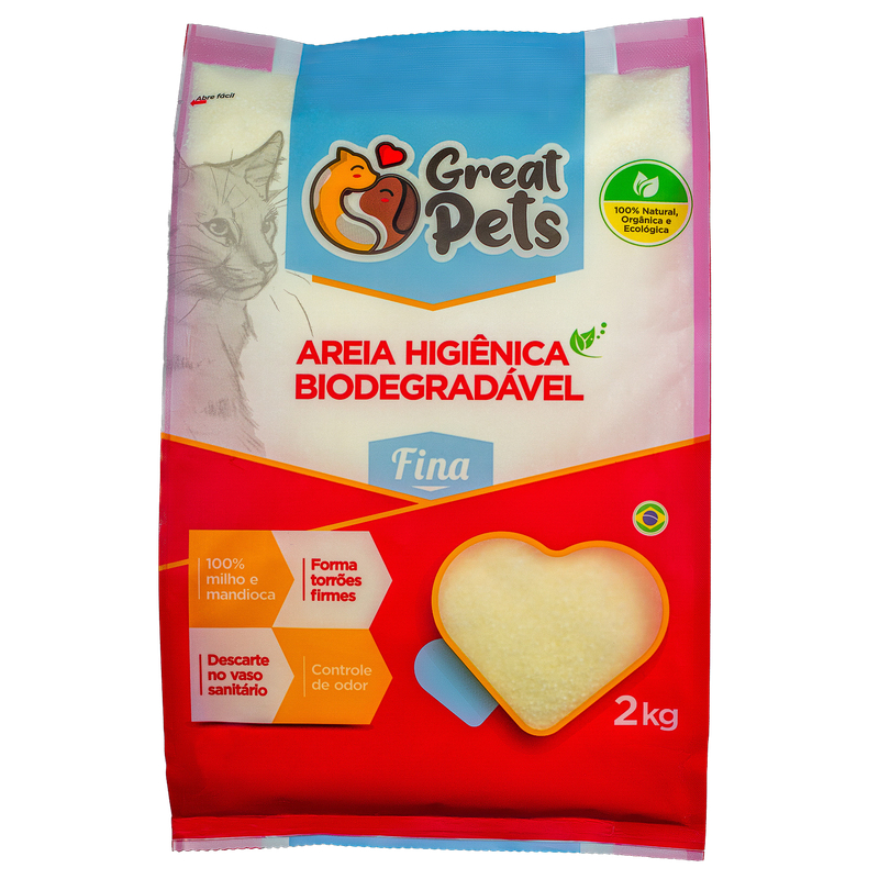 Areia Higiênica Milho E Mandioca Fina Great Pets para Gatos 2kg