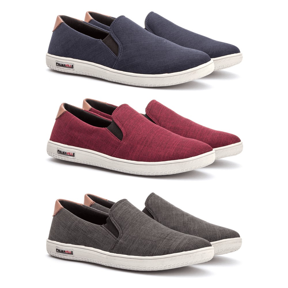 KIT TENIS 3 Pares + Carteira de brinde - Slip On Iate Urban (Azul, Vermelho e Grafite)