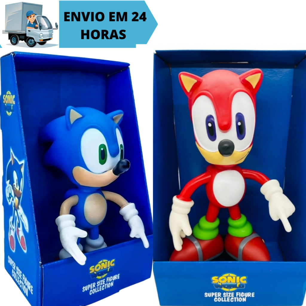 Combo Kit 2 Bonecos Sonic Vermelho E Sonic Azul Vinil Collection Brinquedo Jogo 23cm Articulados Colecionável Brinquedo Original