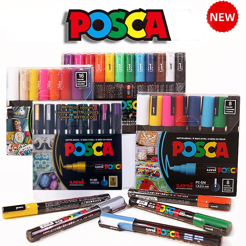 Uni Caneta Marcadora De Tinta Posca PC-1M 5M/Extra Fina/Ponto Fino Médio 7/8/15/De Pigmentada À Prova D'água Com Vinil Origina kit caneta posca ponta fina branca Cartaz | PC-1M/3M/5M POP Marcador D'águamar Cadores Para Desenho