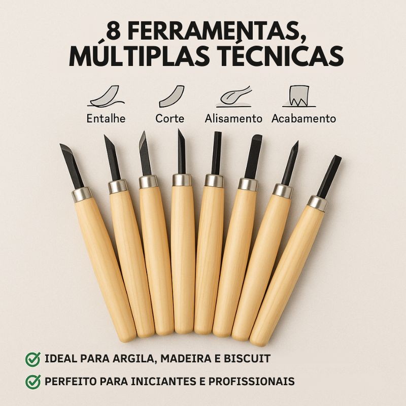 Kit Formão Goiva Entalhe Esculpir Xilogravura P/ Madeira 8Pç