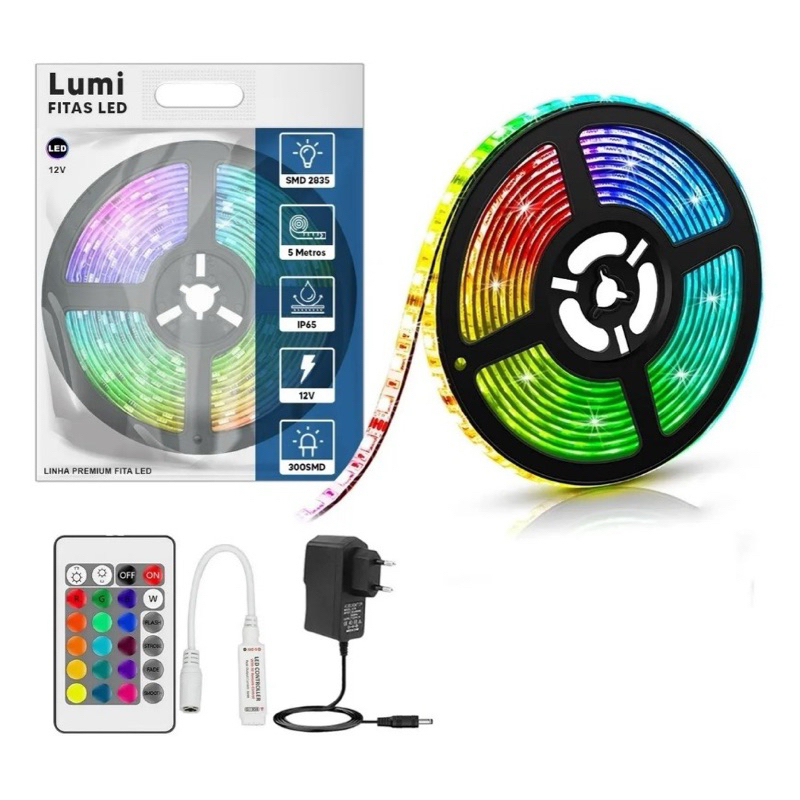 Fita LED RGB 3528 Rolo 5 Metros Fitas com Fonte e Controle