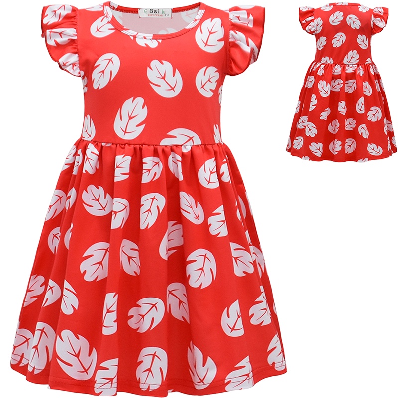 Vestido De Verão Para Meninas Lilo & Stitch Manga Curta Vermelha Leite Seda Princesa Festa Folhas Impressões Vestidos Crianças Aniversário Presentes De Natal