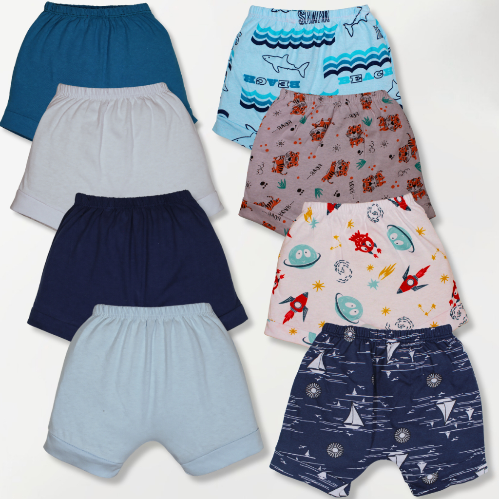 Kit 8 Peças Shorts Bebe Infantil Malha Lisa E Estampado 100% Algodão Menino