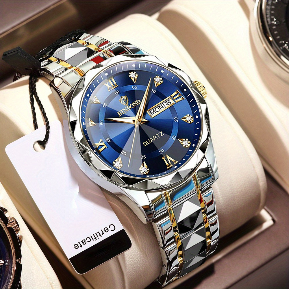 BINBOND Calendário De Relógio De Quartzo De Luxo Para Negócios Data Noite Moda Masculina À Prova D'água + Caixa