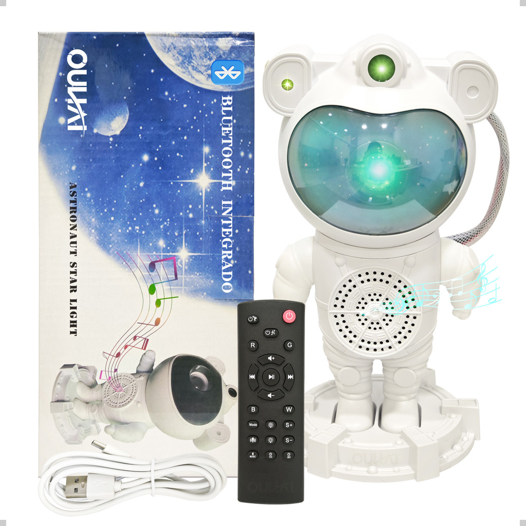 Luminaria Projetor De Luz Astronauta Lua Com Bluetooth Alto Falante Galaxy Ligth Estrelas Cor Da Estrutura Branco 110v/220v -enviado imediatamente