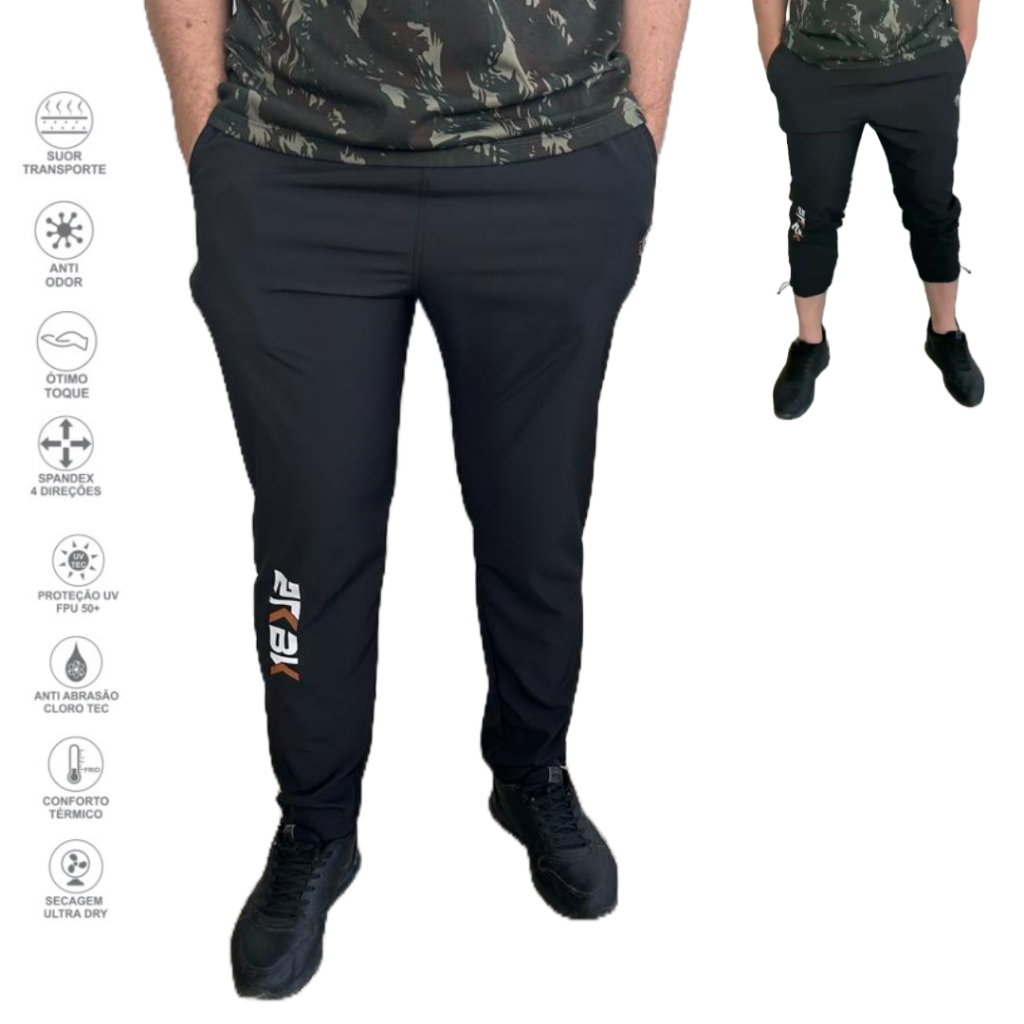 Calça Tactel Masculina de Pesca Academia Esporte Corrida Elastano Preta Jogger
