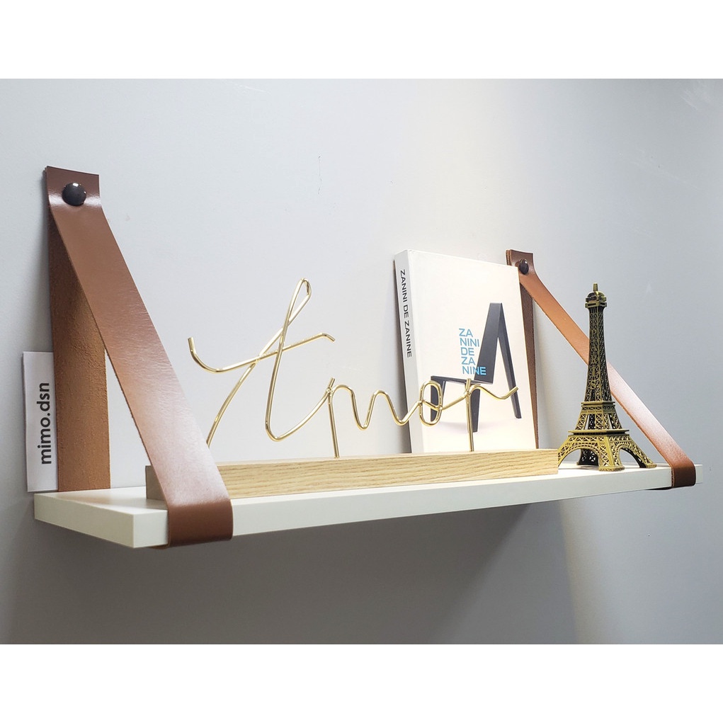 Par de Alças reforçadas acompanha prateleira 30 / 45 / 60 cm MDF ou Madeira Pinus - Alças de 2 cm de largura com Textura de Couro + Parafusos Simples