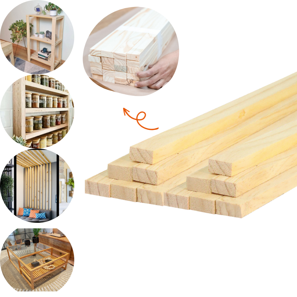 60 Ripas de Madeira de Pinus Pra Artesanatos Painel Ripado 2x1x55cm Decoração Minimalista