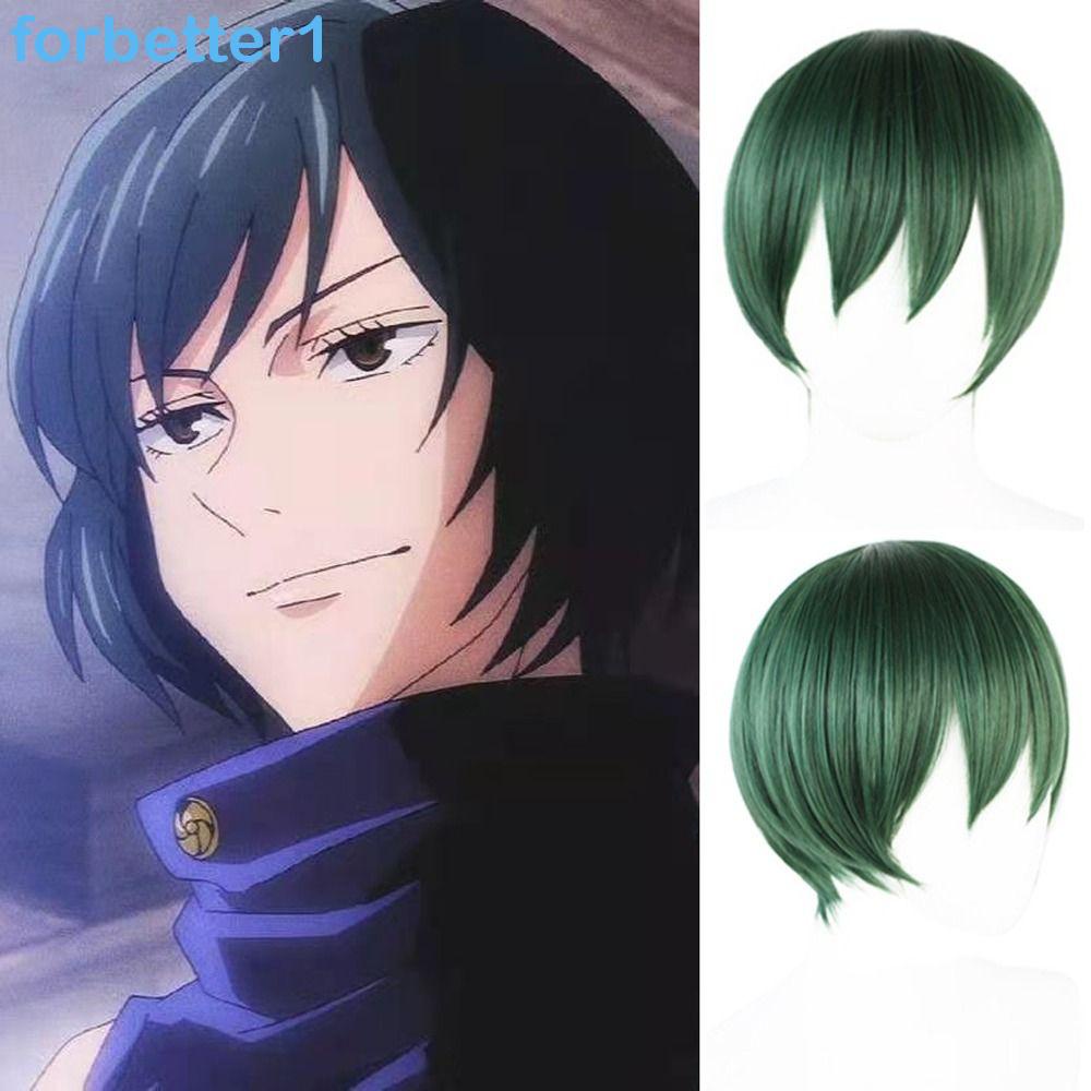 FORBETTER Zenin Mai Cosplay Peruca , Anime Cabelos Sintéticos Jujutsu Kaisen , Curtos Em Camadas De Halloween Resistentes Ao Calor Verde Escuro
