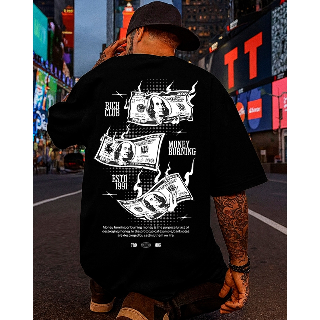 Camiseta Streetwear Masculina Oversized Estampada Money Cash Camisa 100% Algodão Penteado Premium