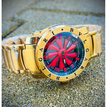 Relogio Dourado Banhado a Ouro Cassino Roleta Giratoria Speedway Ventilador18k Pesado Luxo Masculino