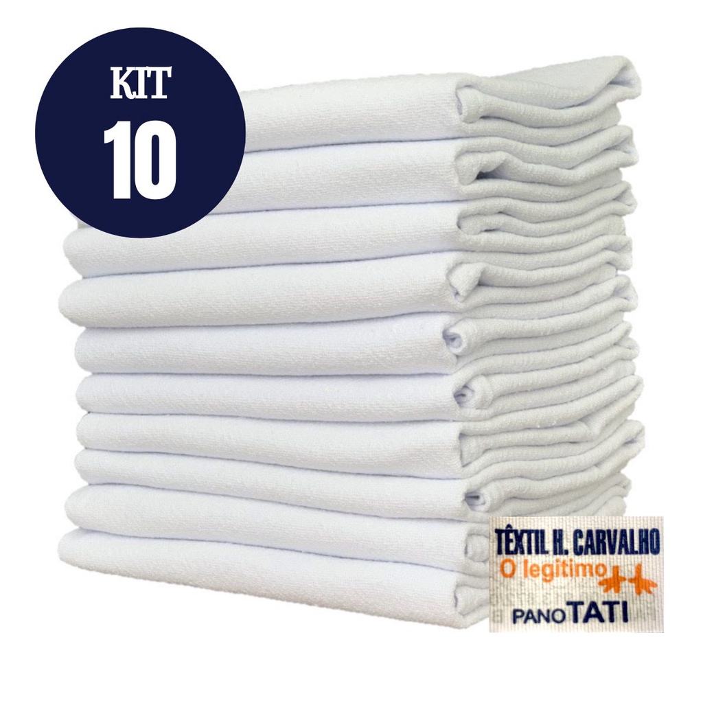 Pano De Prato Liso Branco Pe de galinha Grande Com Bainha Kit Com 10 Peças