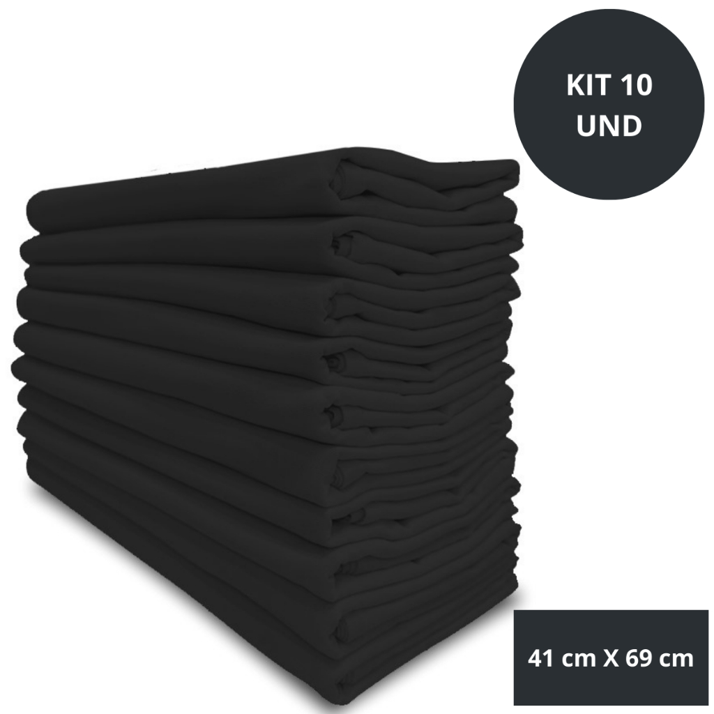Kit 10 Panos de Prato Preto Liso Cozinha Santa Margarida 41X69 com Bainha Pé de Galinha