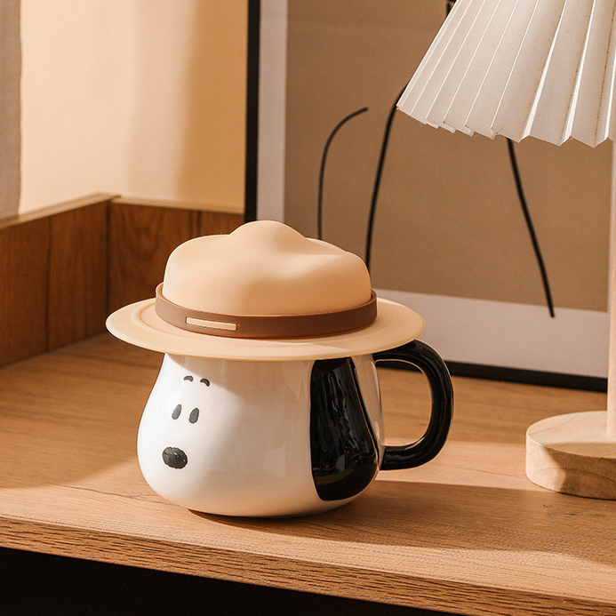 Caneca De Cerâmica Snoopy Com Alça Xícara De Café Da Manhã Palha Criativa Tampa De silicone Boneca