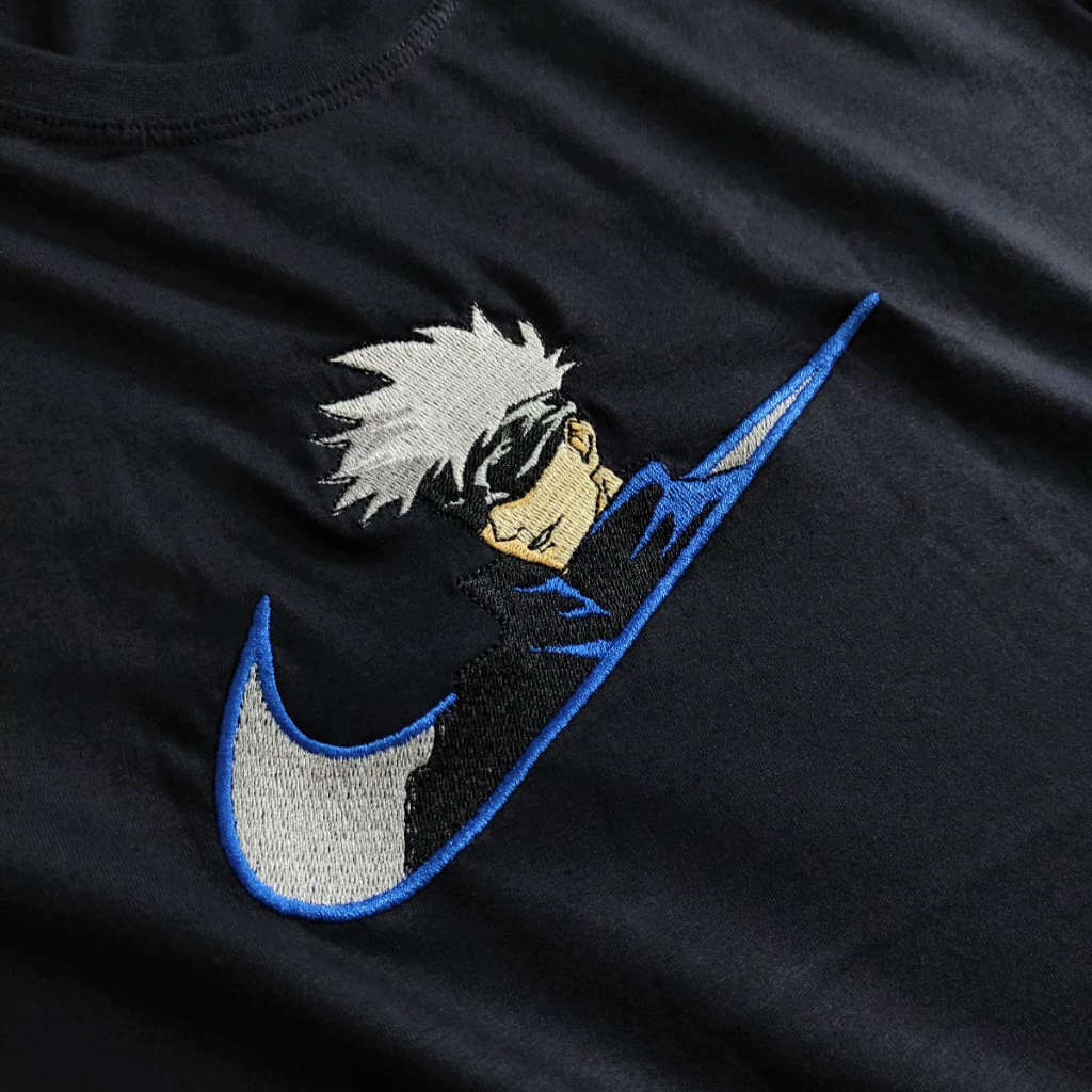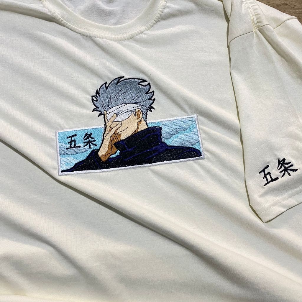 Camiseta Satoru gojo bordado Jujutsu kaisen blusa Bordado anime camisa 100% algodao