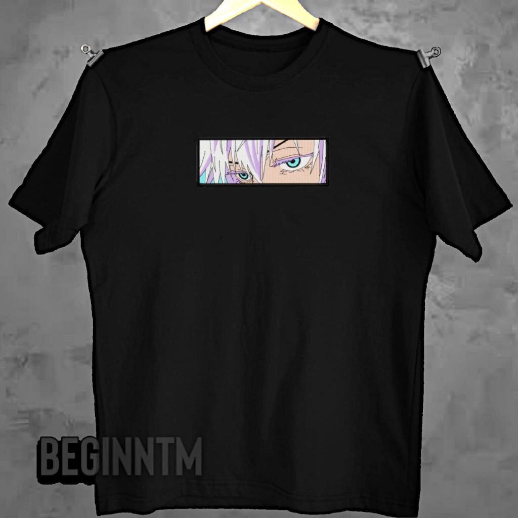 Camiseta Satoru Eyes bordado Jujutsu kaisen anime blusa Bordado anime camisa 100% algodao