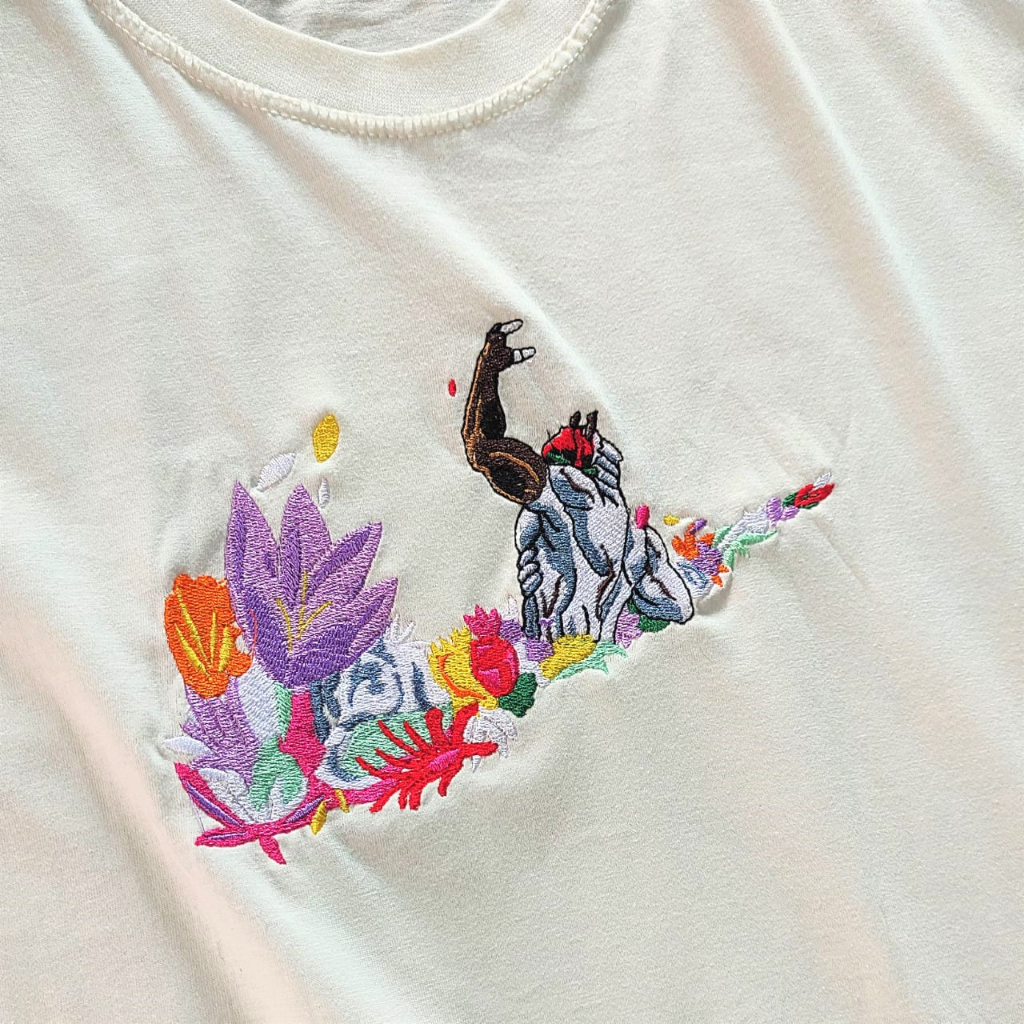 Camiseta Hanami Bordado anime Jujutsu kaisen camisa 100% algodao penteado Hanami flor