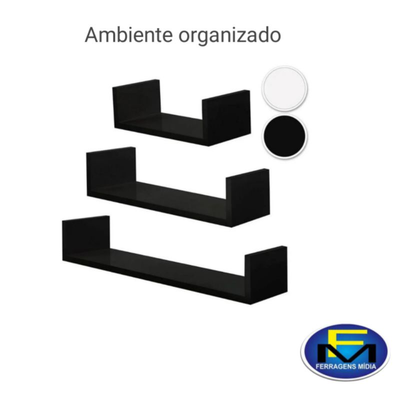 kit 3 Prateleira U Preto ou Branco 20 30 40 100% Mdf
