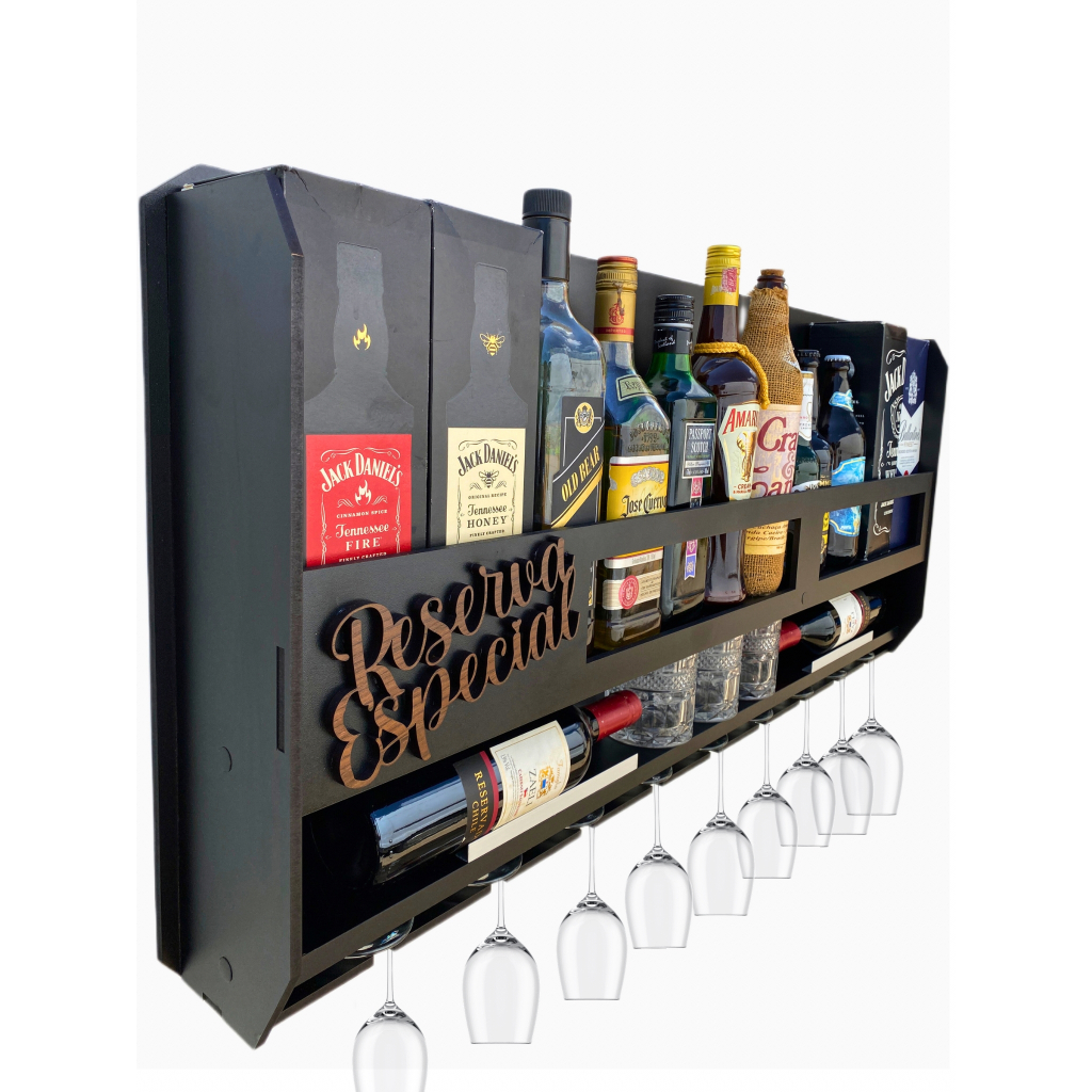 Bar de Parede Adega 100% Mdf Barzinho Vinhos Garrafas Taças Madeira Decoração Whiskey Reserva Especial