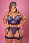 Conjunto Perneira Plus Size Lingerie Sexy com Cinta Liga Calcinha e Sutiã