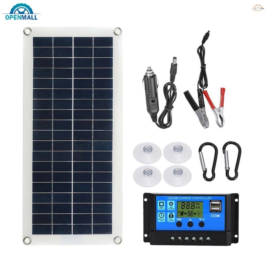 ✨ Kit De Painel Solar Flexível Portátil 300W Interruptor De 12V Interface De Carregamento USB Placa Com Controlador Células Solares À Prova D'água Para Telefone RV Carro # yingerjian
