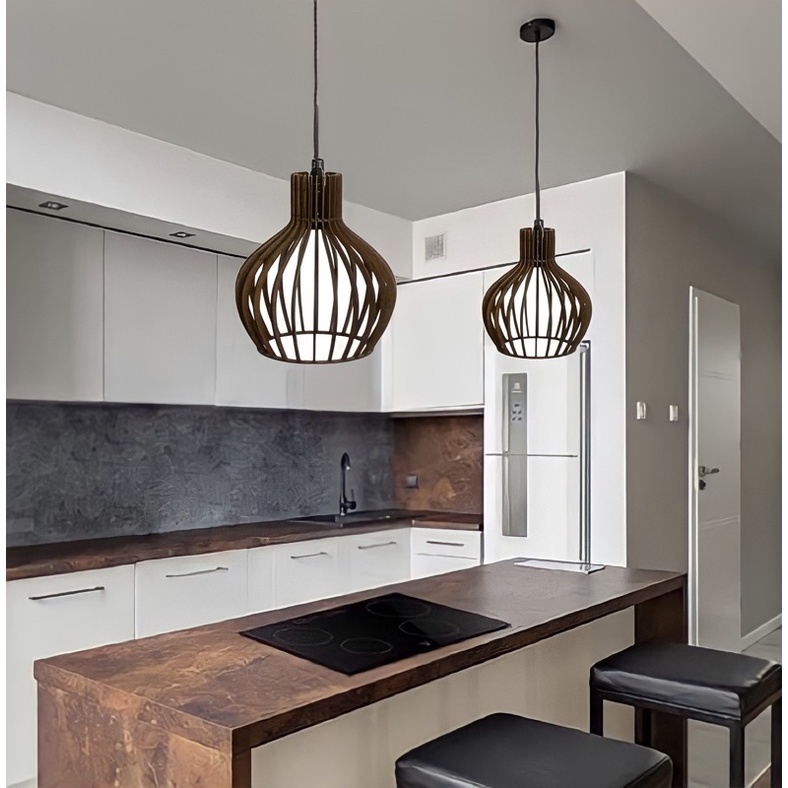 02 Pendentes Luminária Lustres Para Balcão De Cozinha Área Gourmet Churrasco Marrom 1 Metro De Fio - 2ppm