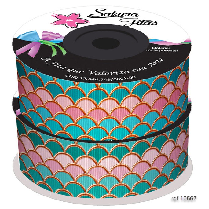 Fita Estampada de Gorgorão Sereia 38mm x 10m Ref.10567-G38