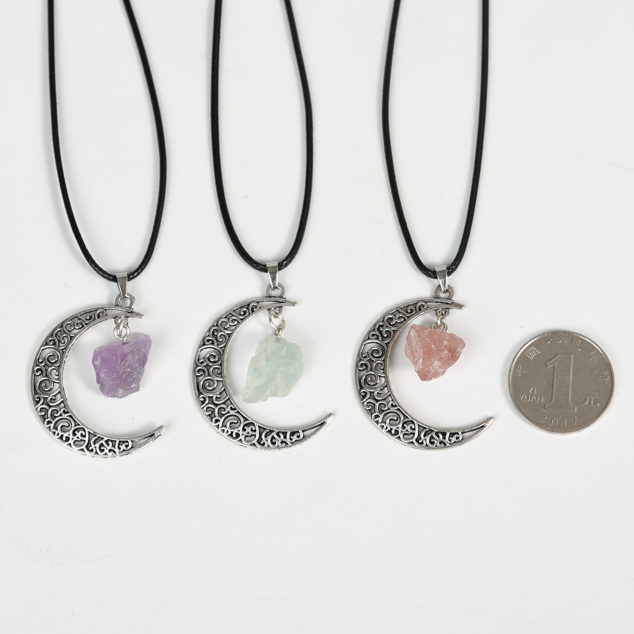 Jóias Européias Americanas Transfronteiriças Amazonas Jóias de Venda a Quente Colar de Pedra Áspera de Cristal Natural Colar de Prata Lua Nicho Feminino Pingente