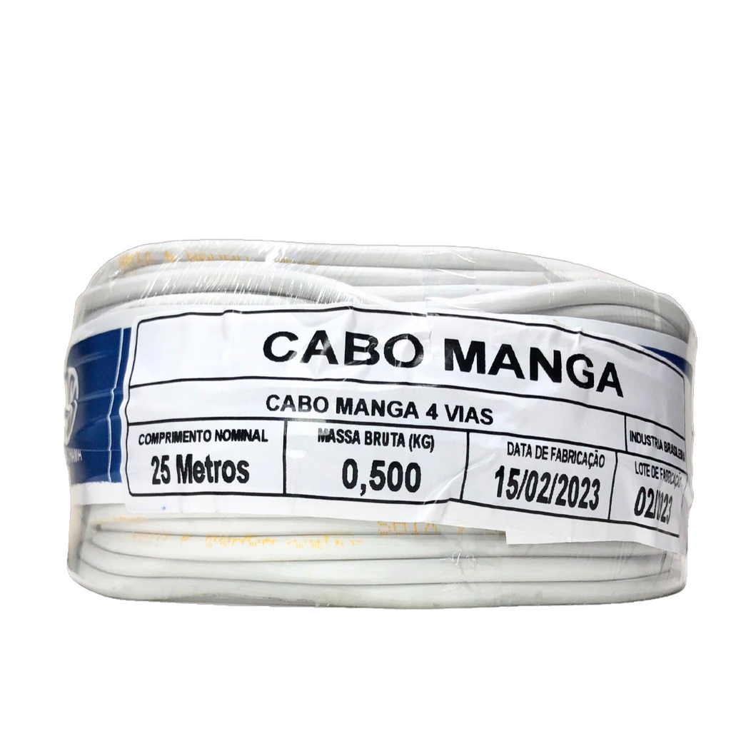Rolo Cabo Manga 4 Vias 25 Metros Flexivel 26 Awg fio 4 em 1 branco para fitas de led som Iluminação