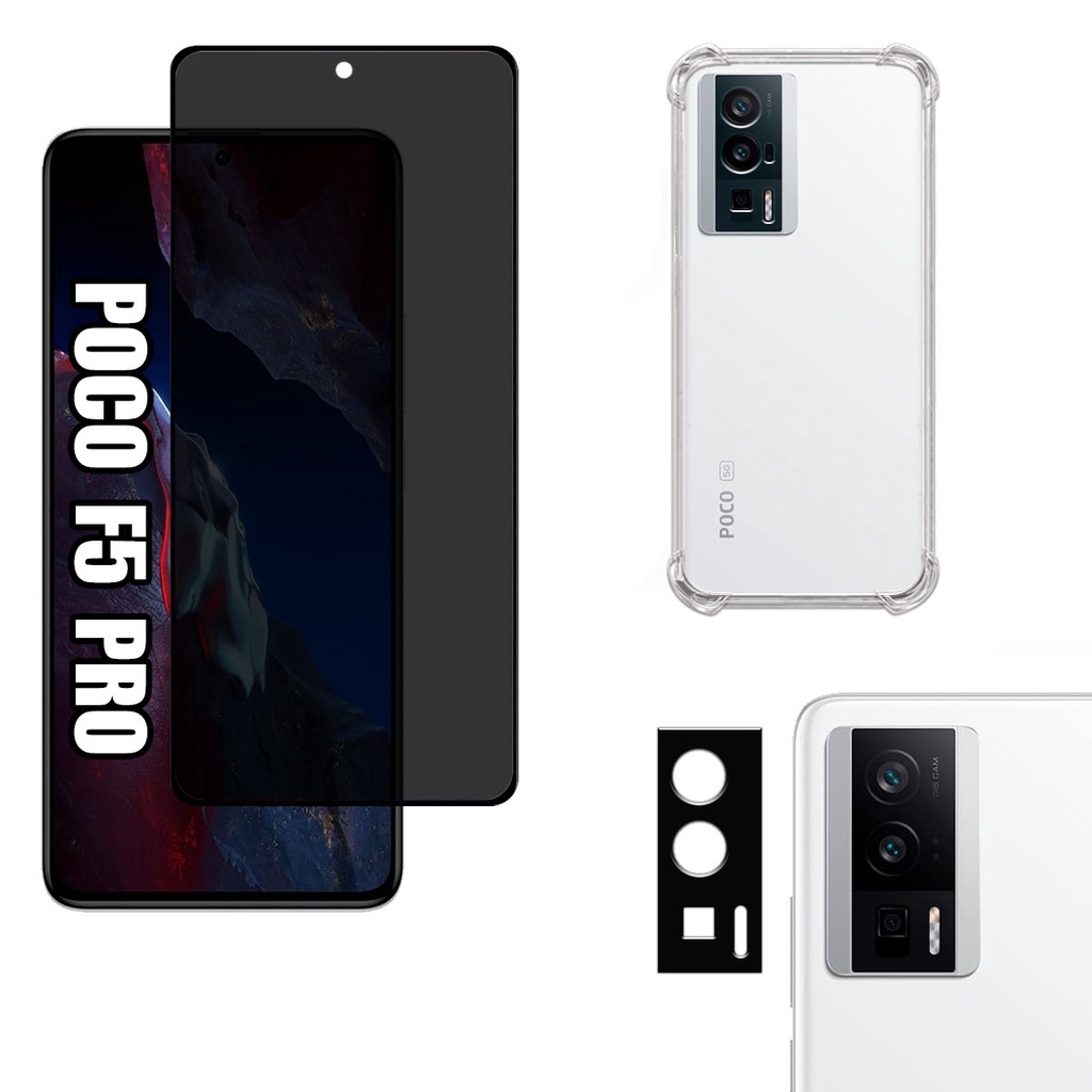 KIT Para Xiaomi Poco F5 Pro 5G | Película de Privacidade 3D - Capa Capinha Anti Shock - Película da Câmera 3D