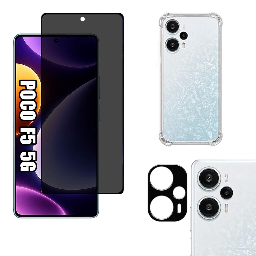 KIT Para Xiaomi Poco F5 5G | Película de Privacidade 3D - Capa Capinha Anti Shock - Película da Câmera 3D