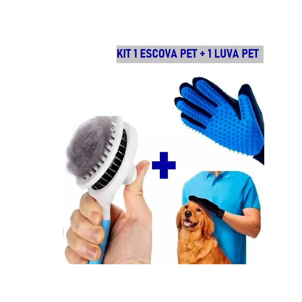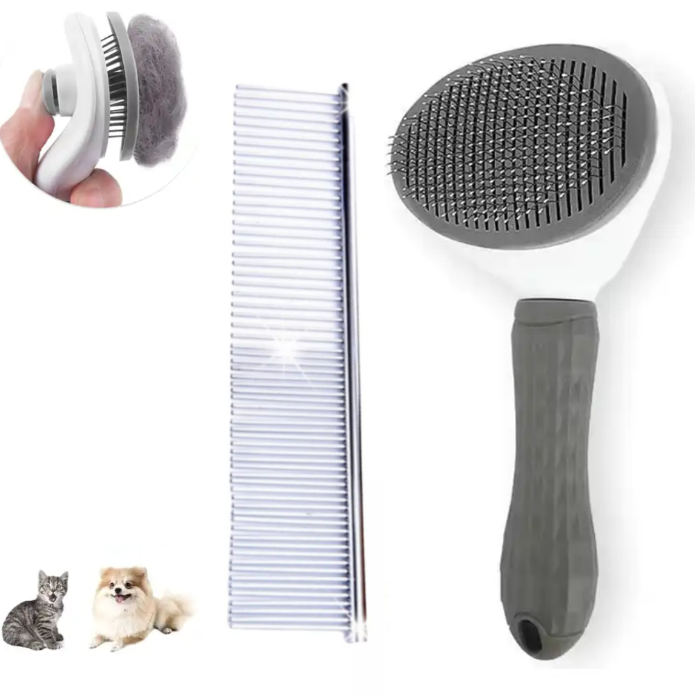 Kit Escova Removedora de Pelos Pet e Pente Aço Para Gatos e Cachorros