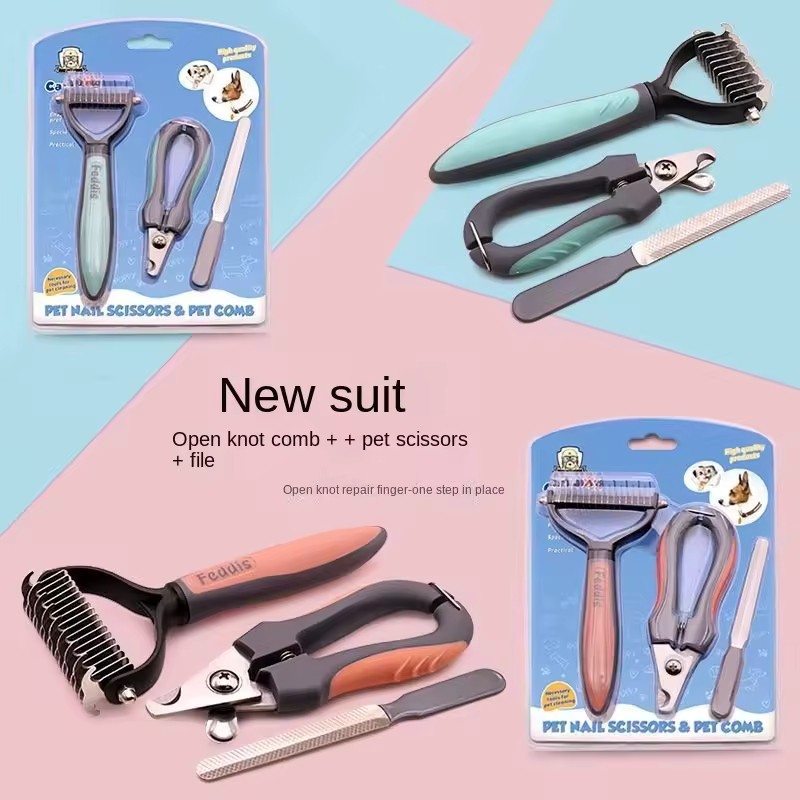 Kit 3 Peças Pet Cortador de Unha + Lixa de Unha + Escova Removedora De Pelos dos Pets Cães e Gatos