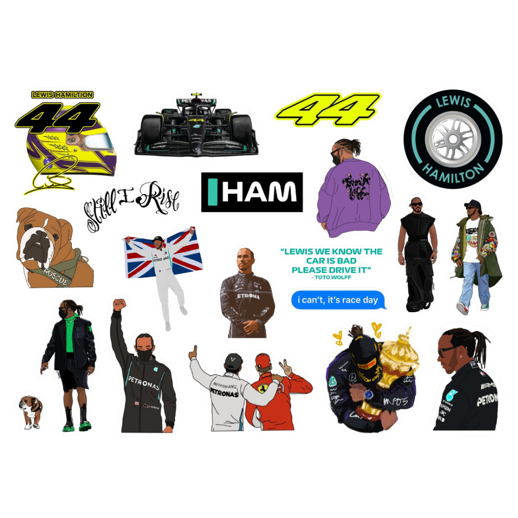 LEWIS HAMILTON - CARTELA DE ADESIVOS (sem recorte, com recorte ou a prova d'água)