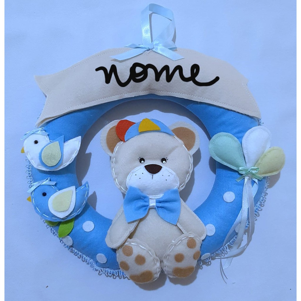 Guirlanda Para Porta De Quarto De Bebê Personalizada Menino Ursinho Azul Decoração